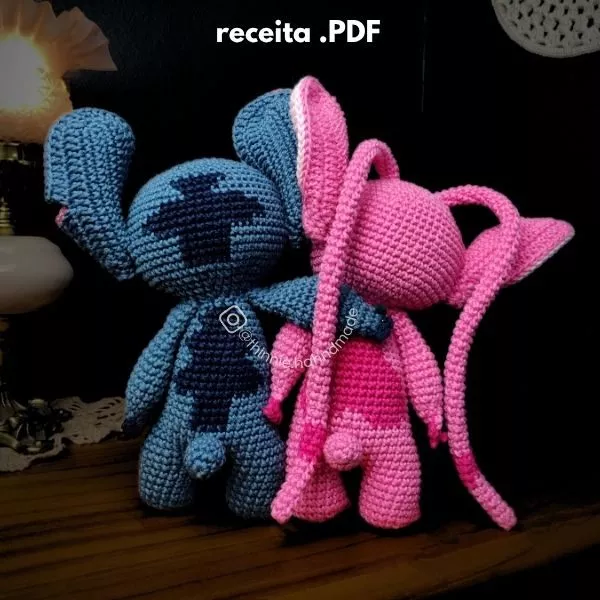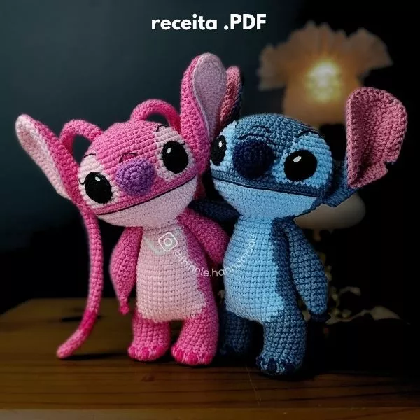Passo a passo detalhado com texto, imagens e vídeos para a produção do Stitch e da Angel.